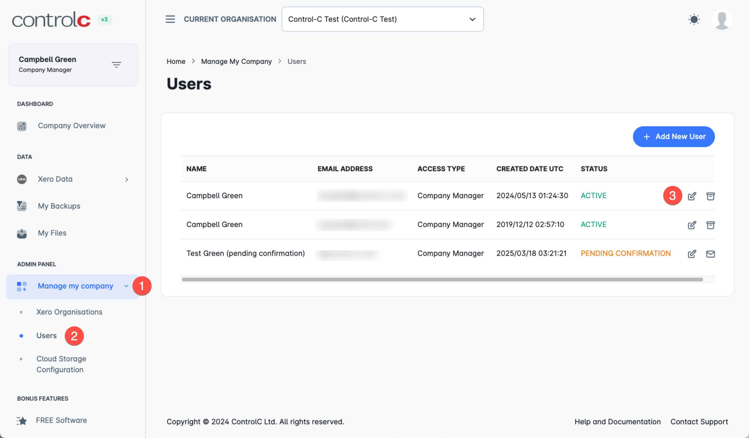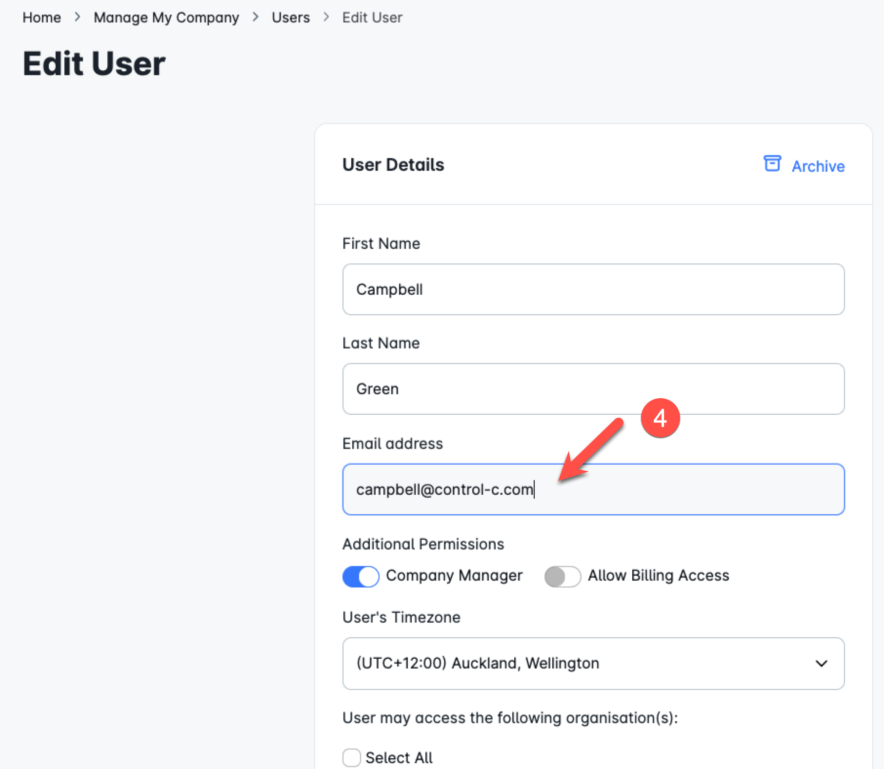 How do I change my registered email address of my Control-C account
